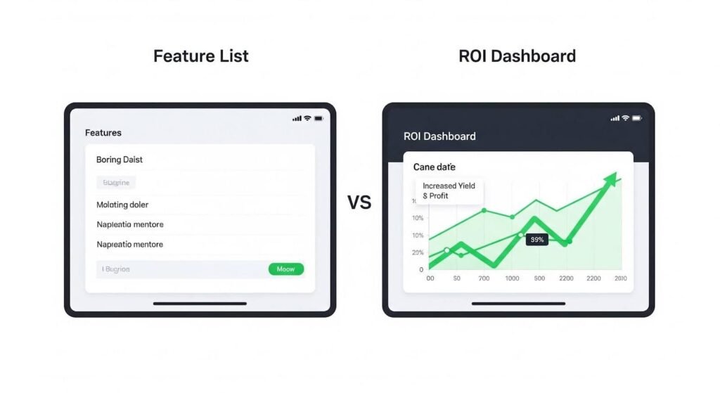 - ROI calculators built into follow-up: An interactive tool lets farmers test your value against their real-world conditions.