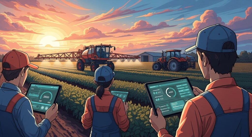 Smart equipment fuels sustainable farming. IoT sensors and autonomous sprayers reduce fertilizer and pesticide use by 20–50 % and cut water consumption by 30–50 %, while preserving yields. Precision robots like Solinftec’s sprayers deliver 30 % yield gains and pay for themselves within two seasons. AI‑guided irrigation systems monitor soil moisture and apply water only where needed. Predictive maintenance algorithms ensure equipment runs efficiently, reducing waste and emissions. Leasing companies increasingly provide energy‑efficient machines and maintain them to extend life cycles, reducing environmental impact. For farmers, this means healthier soils, cleaner waterways and lower carbon footprints; for equipment suppliers, it opens markets among eco‑conscious growers.